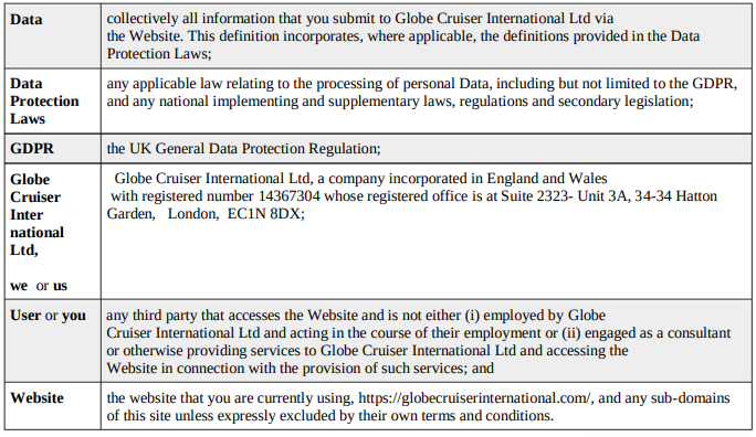 This GDPR policy applies between you, the User of this Website, and Globe Cruiser International Ltd, the